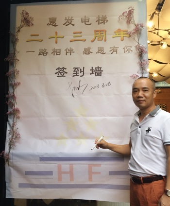 “在惠發(fā)電梯23周年這個(gè)精彩時(shí)刻,雖然是艱辛,但是越做越有味道,越做越好,而且在這個(gè)行業(yè)里面,應(yīng)該要樹(shù)立自己的標(biāo)兵,要做大家都贊揚(yáng)的企業(yè)!”