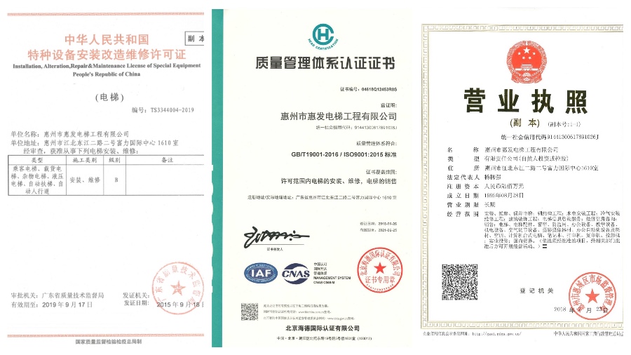 惠州市惠發(fā)電梯工程有限公司,成立于1995年,已有20多年的成長歷程;是惠州市首家通過B級認證的專業(yè)電梯企業(yè);為惠州市行業(yè)內最早通過ISO9001質量體系認證的企業(yè)之一。公司注重品質,同時注重創(chuàng)新,目前已獲得各項技術專利共10多項!公司經營范圍包括:電梯銷售、安裝、維修、保養(yǎng)、舊樓加裝電梯改造等。