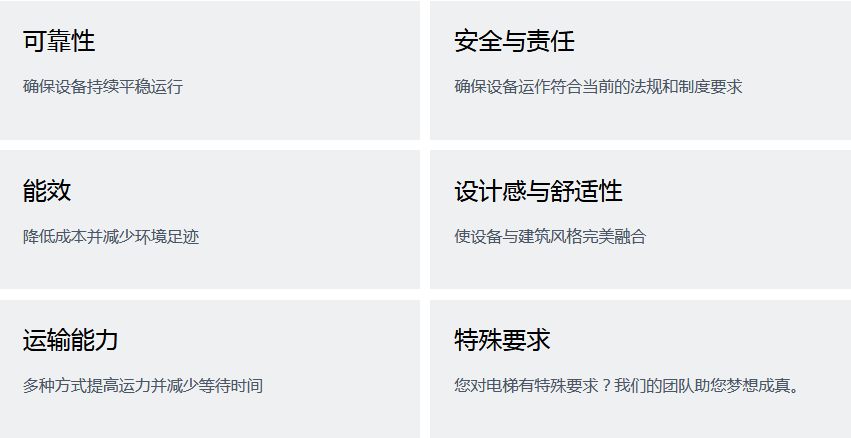 我們的解決方案多種多樣,從小型電梯到高端的電梯均可選擇。